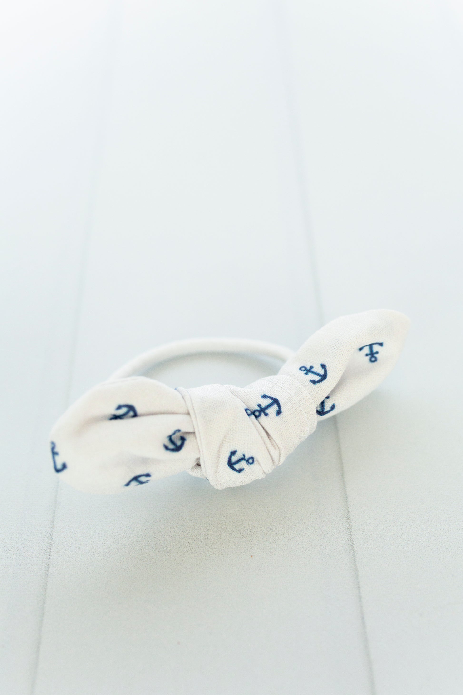 Introducing the Goin' Coastal Collection! All of these pieces are sustainably made and eco-friendly! Inspired by an endless coastal summer, these navy mini anchor bow print hair ties are the perfect accessory to pack on your next vacation. Style with your classic red, white and blue pieces for 4th of July, Labor Day and beyond.