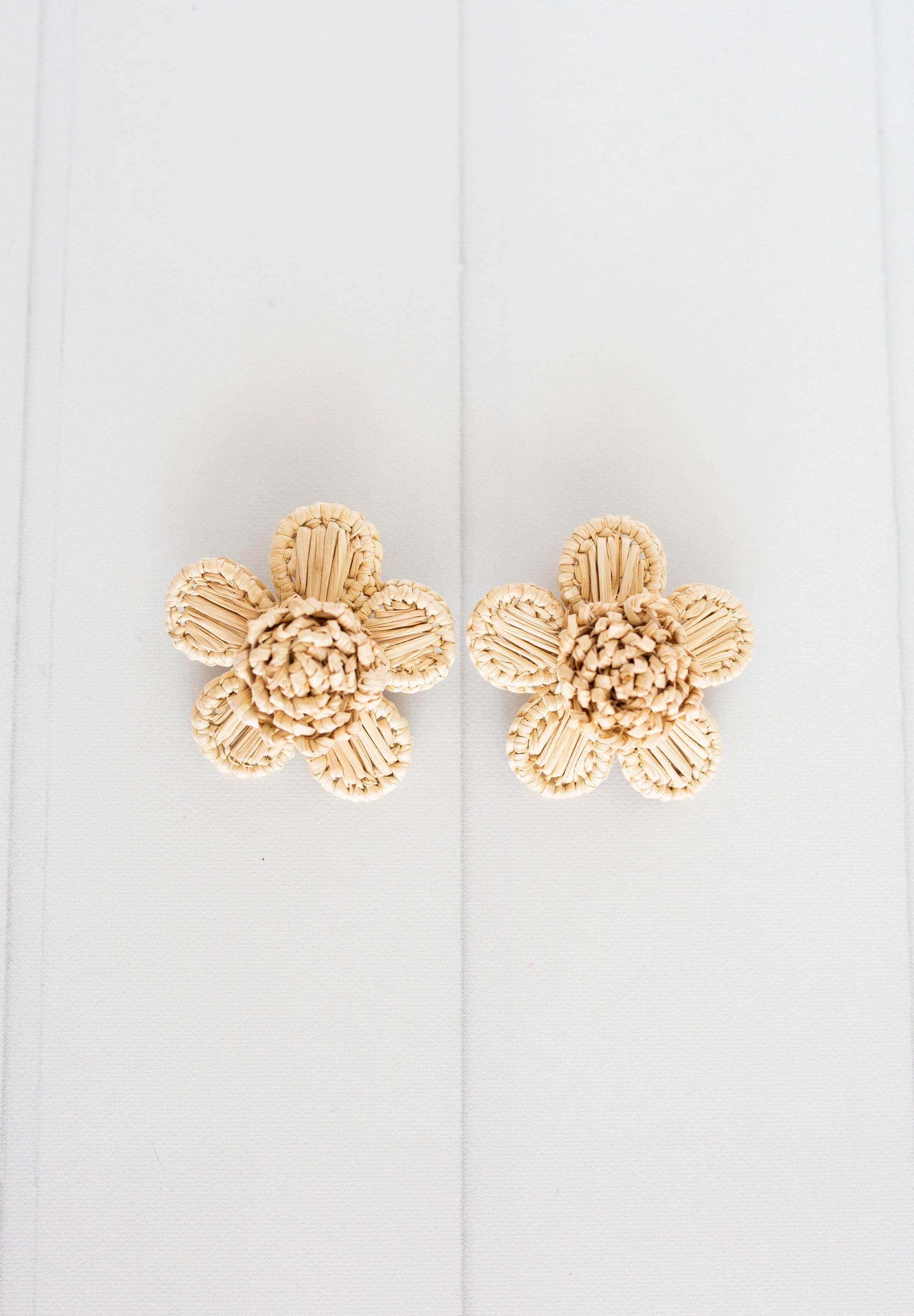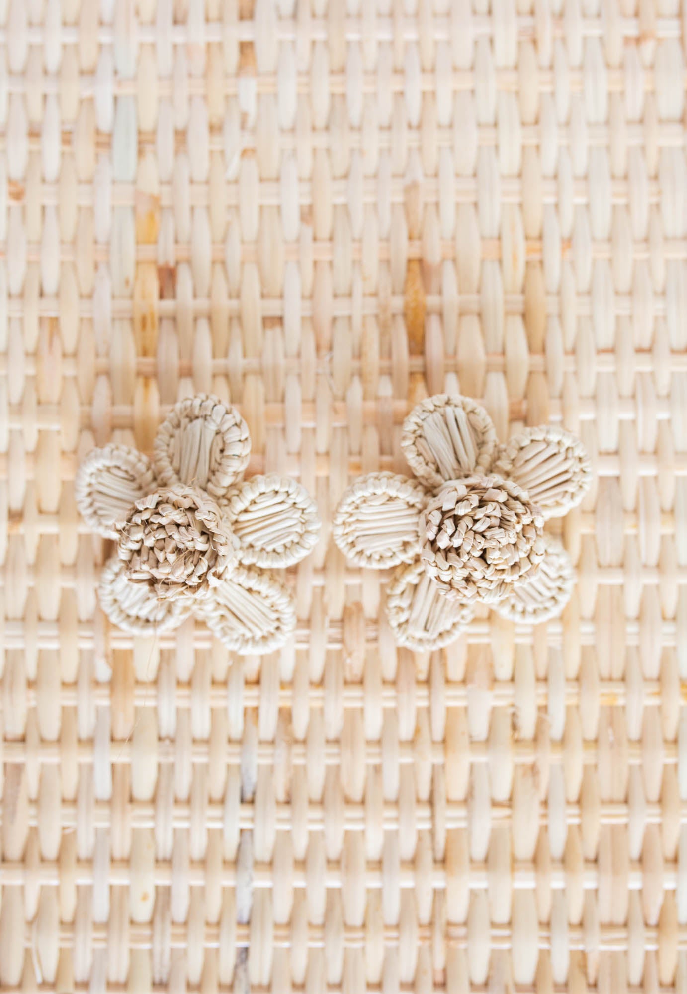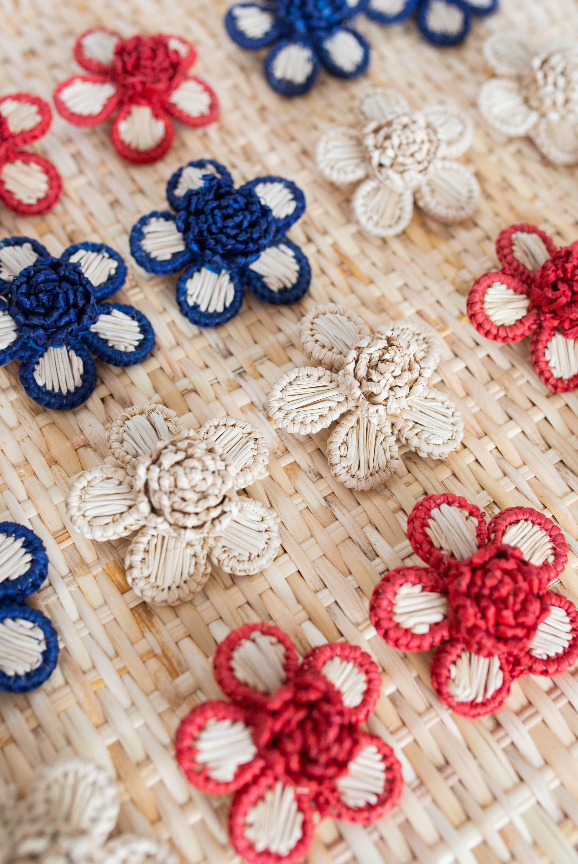 Our newest nautical raffia stud earrings are handwoven by women artisans in Colombia. These sustainable floral earrings are light as a feather, you will hardly notice they're on!