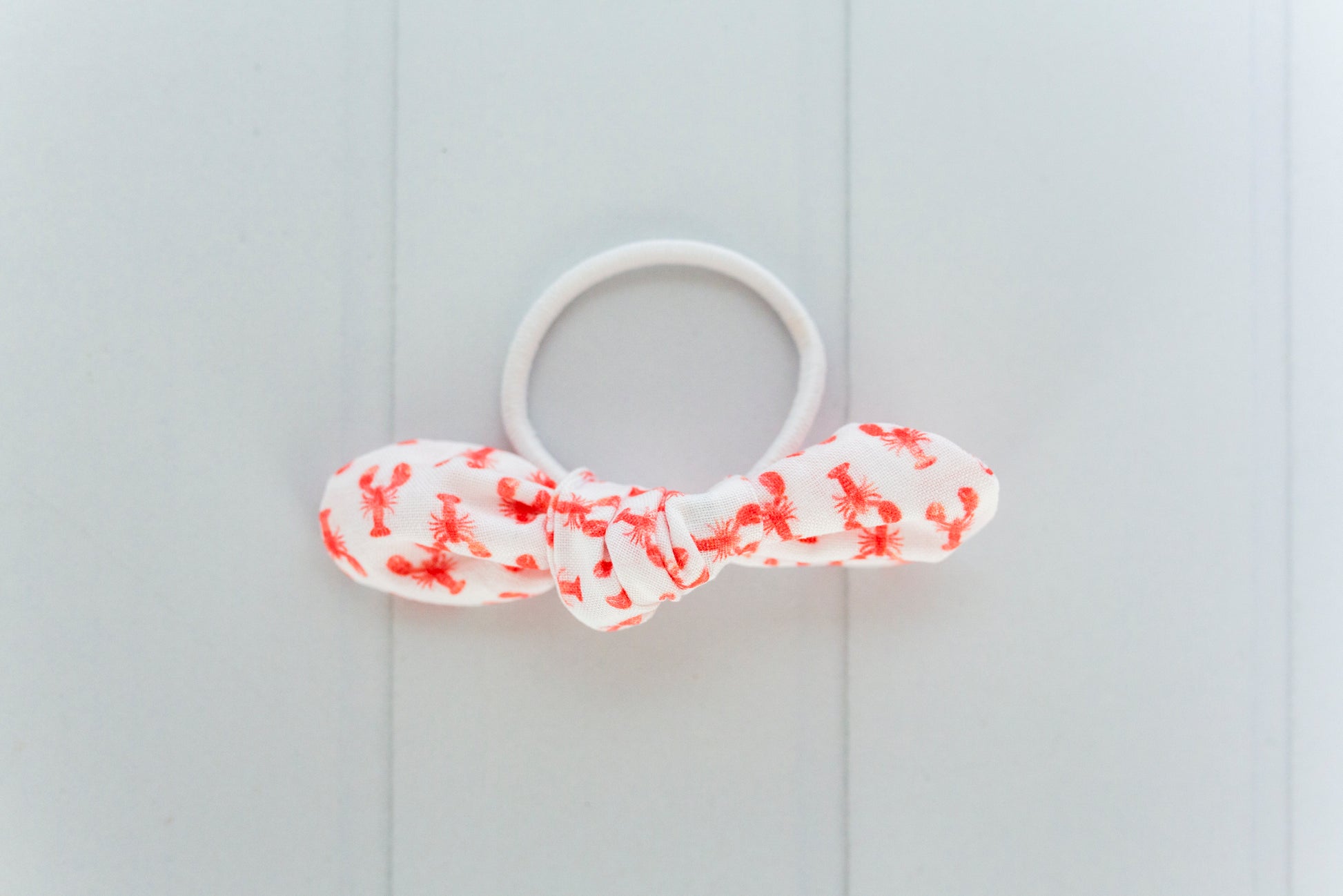 Introducing the Goin' Coastal Collection! All of these pieces are sustainably made and eco-friendly! Inspired by summers spent in Nantucket, these mini red lobster print bow hair ties are the perfect accessory to pack on your next vacation. Style with your classic red, white and blue pieces for 4th of July, Labor Day and beyond.