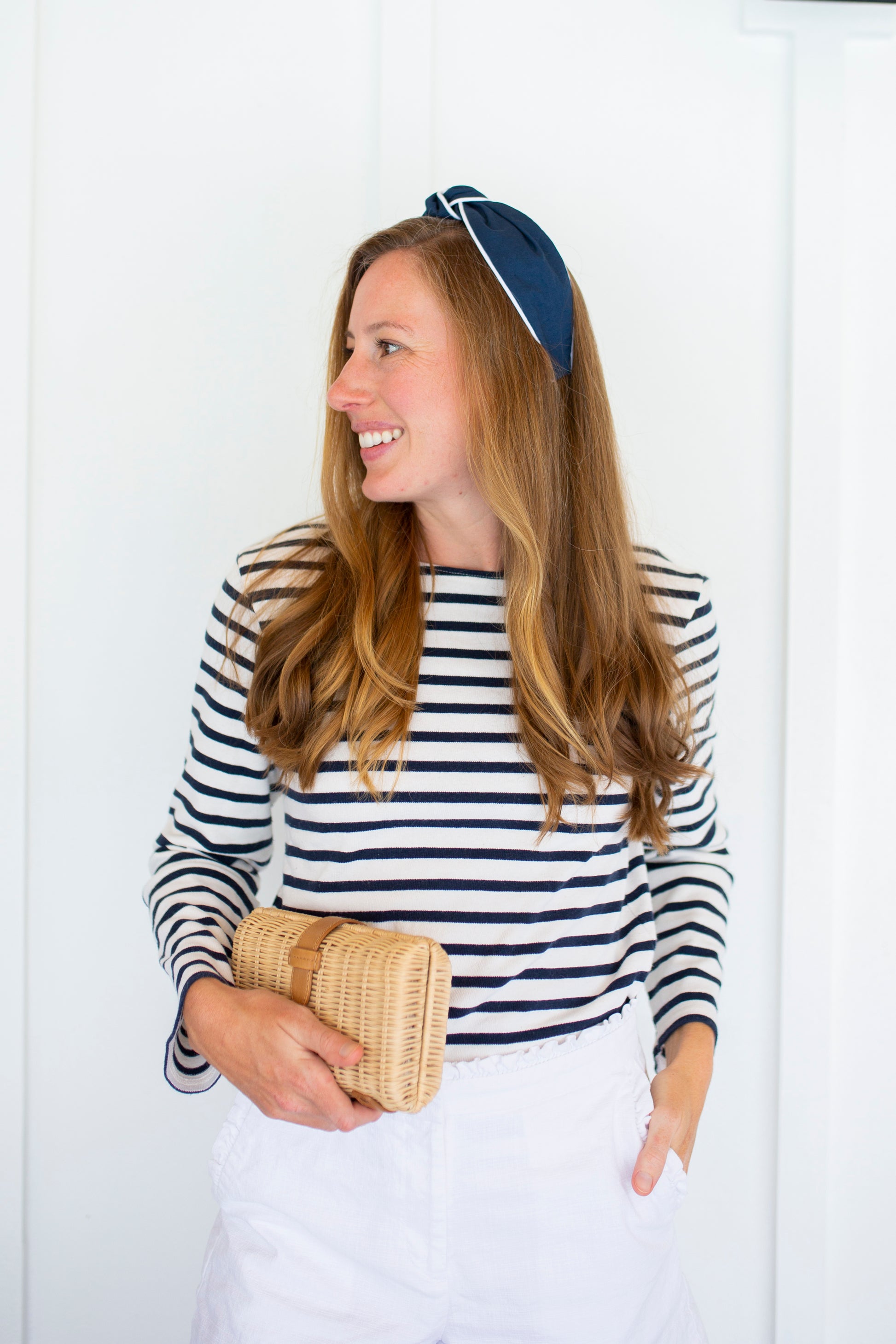 Introducing the Goin' Coastal Collection! All of these pieces are sustainably made and eco-friendly! Inspired by Florida summers spent poolside and lounging by an outdoor patio. These navy and white piped headbands are designed to be worn as a timeless accessory. Style with your classic red, white and blue pieces for 4th of July, Labor Day and beyond.
